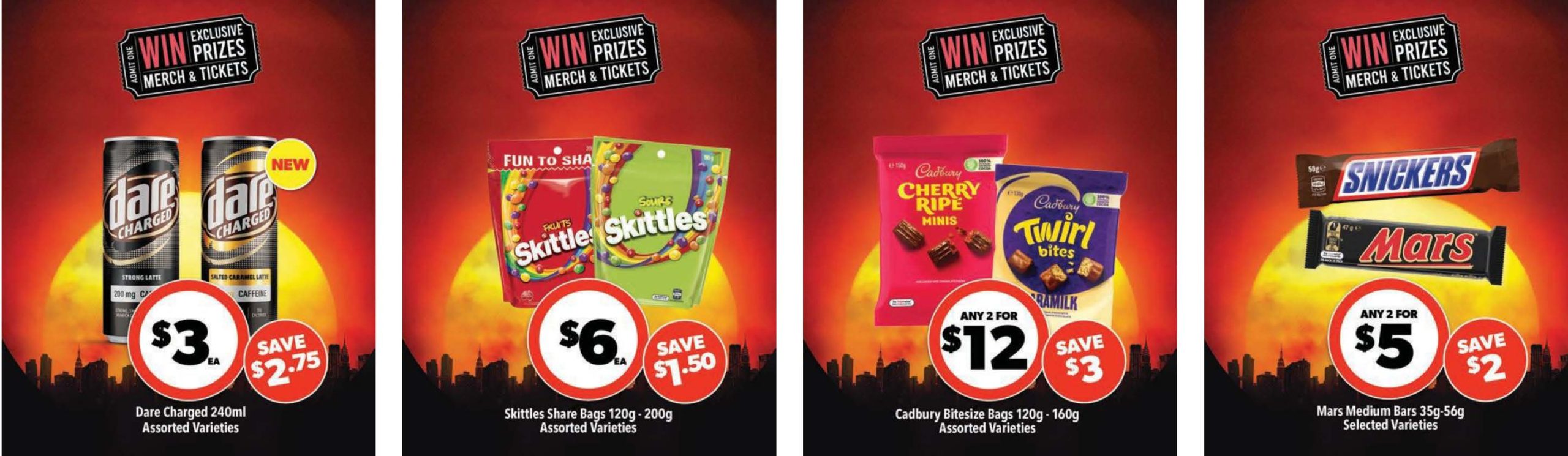In return for purchasing selected products from suppliers including Red Bull, Coca-Cola, Asahi, Optus, Repco, Mars, Smiths and Beca, customers entered unique promotional codes printed on all till receipts via a competition website to win exclusive movie themed prizes.