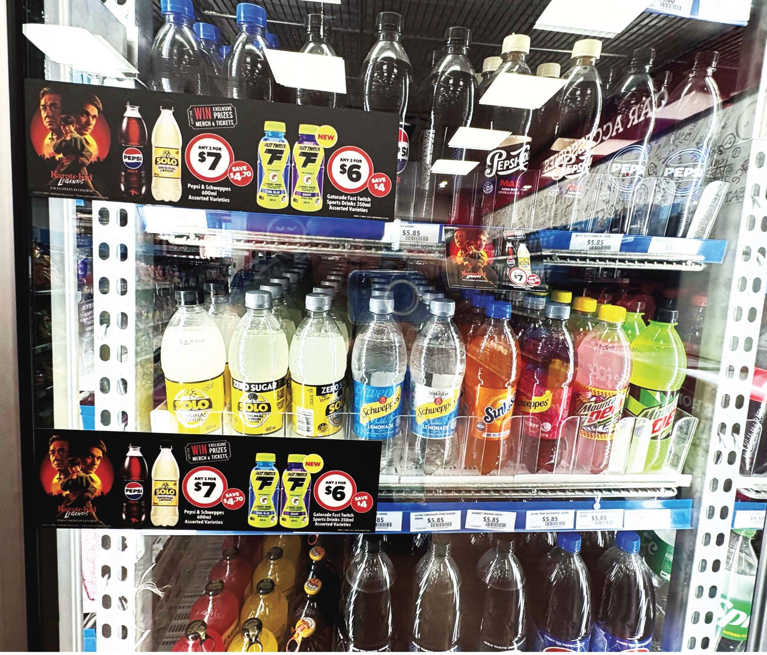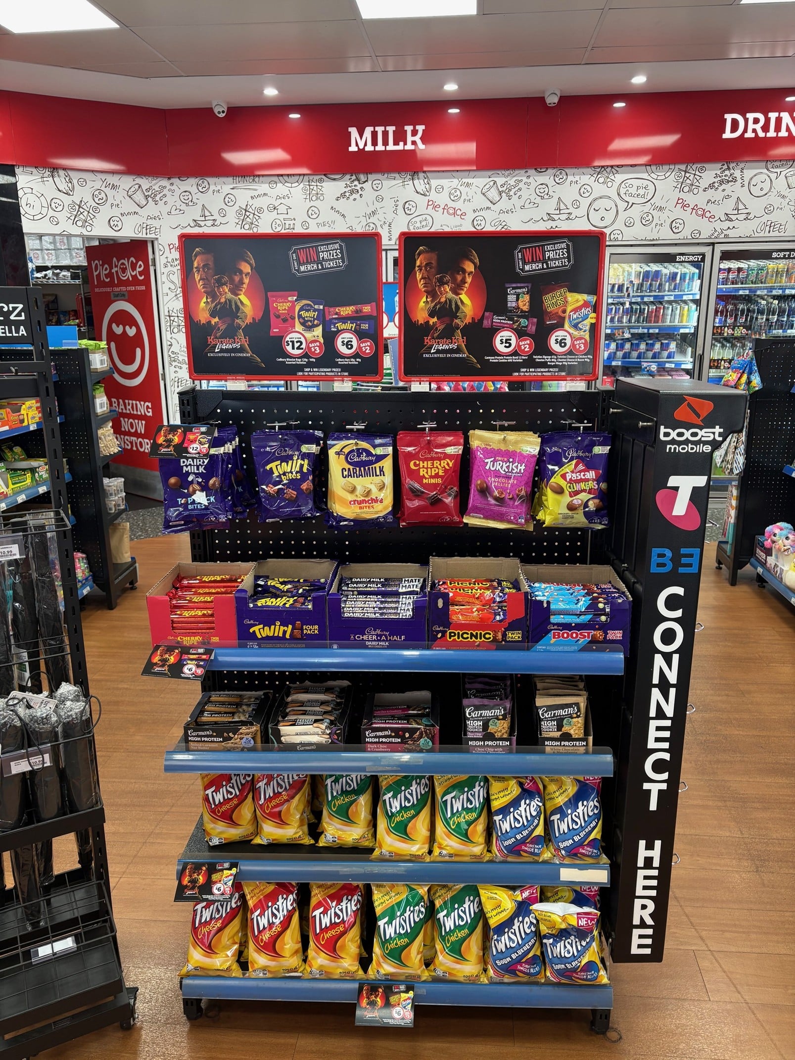 Support: included petrol pump toppers, front door posters, gondola ends, fridge decals, electrostatics, wall posters, shelf talkers, counter digital screens, counter mats, wobblers, CBD owned outdoor site, EDM, website and Social.